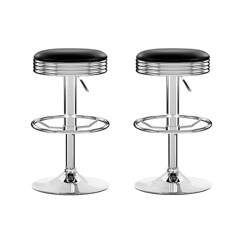 Artiss Set of 4 PU Leather Lined Pattern Bar Stools- Black and Chrome