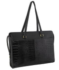 Pierre Cardin Unisex Croc-Embossed Leather Business Computer Bag - Black
