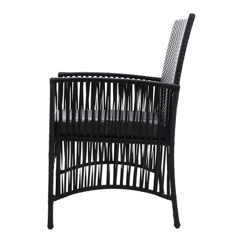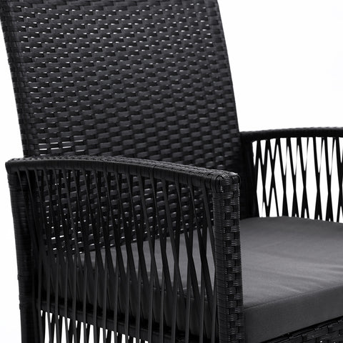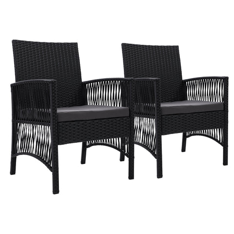 Outdoor Furniture Set of 2 Dining Chairs Wicker Garden Patio Cushion Black Gardeon