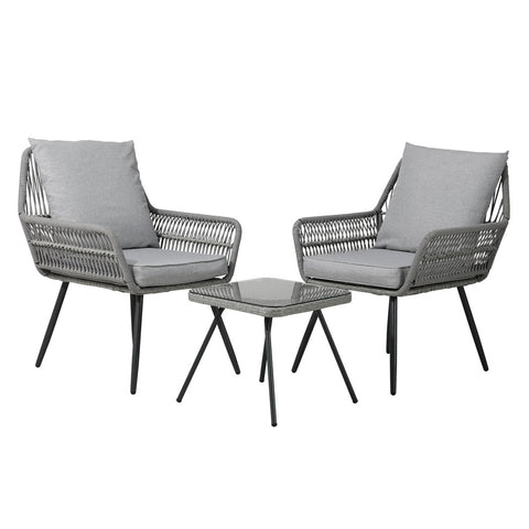 Gardeon Outdoor Furniture 3-Piece Lounge Setting Chairs Table Bistro Set Patio