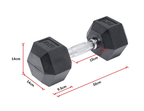 10KG Commercial Rubber Hex Dumbbell Gym Weight