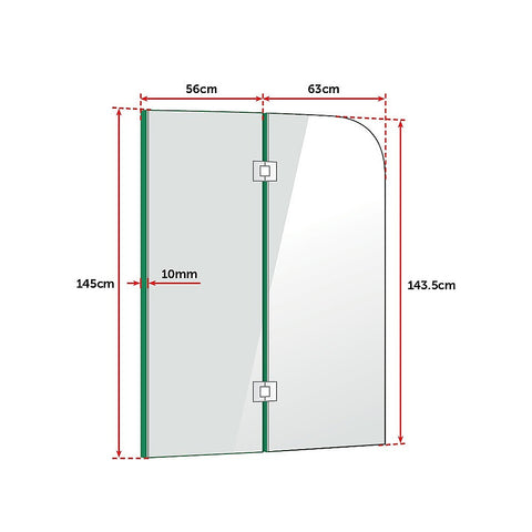 1x 1200 x 1450mm Frameless Bath Panel 10mm Glass Shower Screen By Della Francesca
