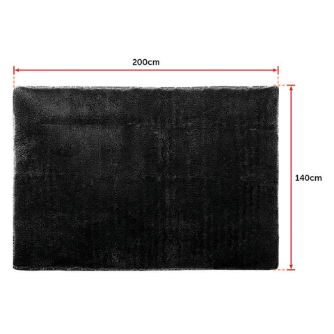 200x140cm Floor Rugs Large Shaggy Rug Area Carpet Bedroom Living Room Mat - Black