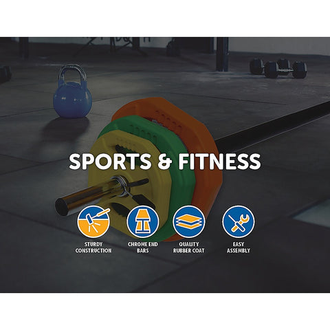 Train for better fitness with Randy & Travis Machinery’s brightly coloured, rubber barbell pump set. At home or in the gym, this barbell set will help you build your strength gradually as you add plates on to the barbell. With a 25 mm centre grip made from springy foam for maximum comfort for your neck and shoulders, you’ll have no excuses for not working out with this barbell set.
