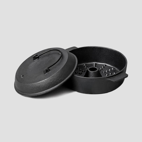 - Rugged cast iron has great heat distribution and retention for slow and even cooking