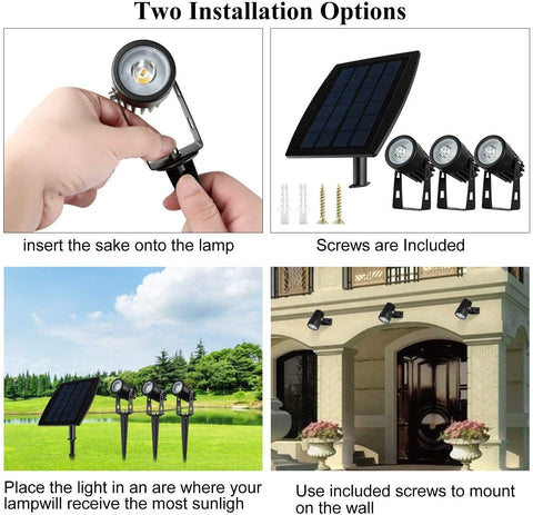 3 x LED Spotlights Powered Solar Garden Lights Outdoor Waterproof (Warm White)