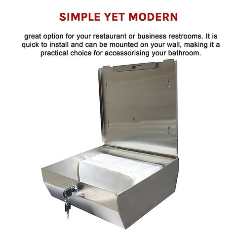 This Stainless Steel Hand Paper Towel Dispenser is a great option for your restaurant or business restrooms. It is quick to install and can be mounted on your wall, making it a practical choice for accessorising your bathroom. The simple yet modern design makes it a great bathroom accessory for commercial restrooms and kitchens. And, the durable stainless steel used in this Heavy-Duty Paper Towel Holder ensures that it will hold up to regular use in high-traffic areas.