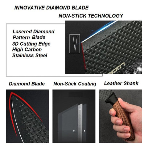 A specialized set of stainless steel nonstick knife sets for all your chopping needs. Includes Chef knife, Utility knife, Cleaver knife, fruit knife, Scissor & ceramic peeler.