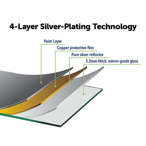 Material: MDF, silver plating, high quality powder coated finish and mirror-grade glass
