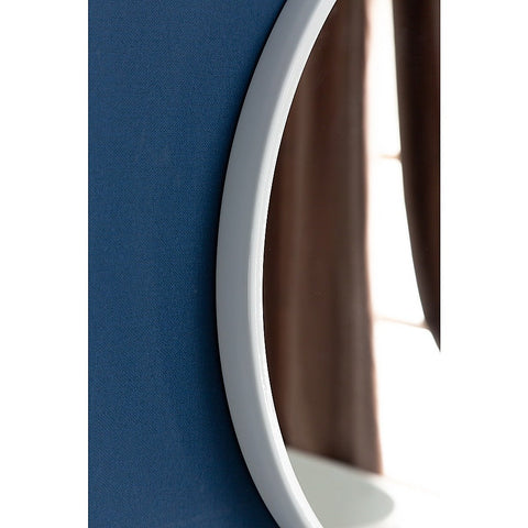 Looking for a sleek, contemporary look for your foyer, living room, bedroom, dining room, or even office? This stunning round mirror from Della Francesca is the perfect solution. With its minimalist white frame and incredible clarity, this mirror will create instant visual pop in any room. Whether your home is mid-century modern, industrial, or contemporary in design, this mirror will accent your room's streamlined style. Its neutral colour will work perfectly with any colour scheme. Its circular design adds an element of curvature, providing a contrast with the vertical lines of the walls and ceiling.