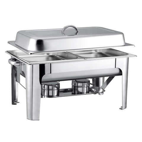 - Considerable Design: The stainless steel chafer also has the ability to hold the lid in an upright position while food in the full-size chafer pan is being served. And the two handles on each side is designed under the consideration of serving dishes and safety. Also the beveled legs provided optimum stability.
