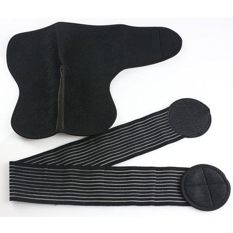 This adjustable Shoulder support brace doubles as a compression strap and provides the protection of a bandage wrap.