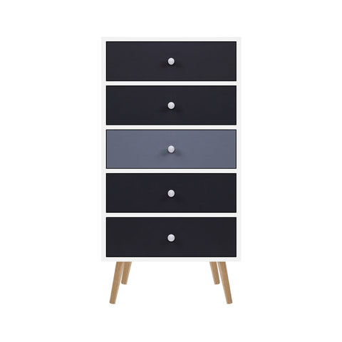 A design that is Scandinavian-inspired and while still reminiscent of decades-old influences, our Artiss 5-drawer Tallboy offers full functionality with subtle style. Made from quality particle board and a smooth paper veneer finish, the two-tone tallboy adds chic appeal to your décor and is the perfect choice to grace a dressing room, bedroom, living room or any other space in your home or establishment. The five generous-sized drawers provide ample space for all your clothing, fashion accessories, personal essentials and more. The splayed legs offer a unique, reliable stance, while the classic knob handles and smooth anti-rust metal drawer slides offer smooth, hassle-free use every time. Not sure this piece will suit your home? Take advantage of the latest 3D augmented reality technology to see it first hand – just scan the QR code on our website and decide for yourself!