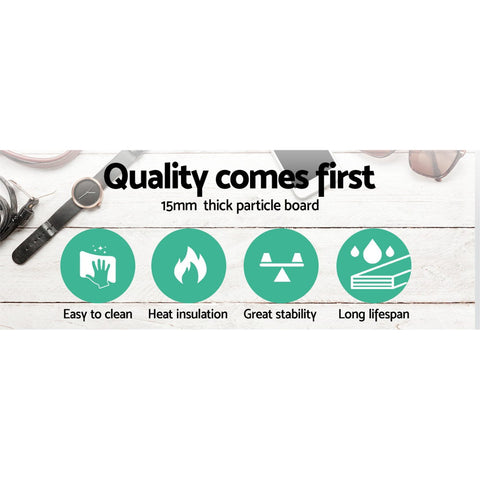 With its eclectic style, our Artiss 4-drawer Tallboy is visually stylish and totally practical. The look is unique and suits any modern or rustic décor perfectly. The four drawers are spacious and installed with metal runners for smooth movement and metal handles for reliability. Overall, the tallboy is built strong and sturdy with an enhanced weight capacity of up to 50kg. It also comes with an elevated design that comprises metal tube legs with adjustable foot pads to balance it on uneven floors if needed.