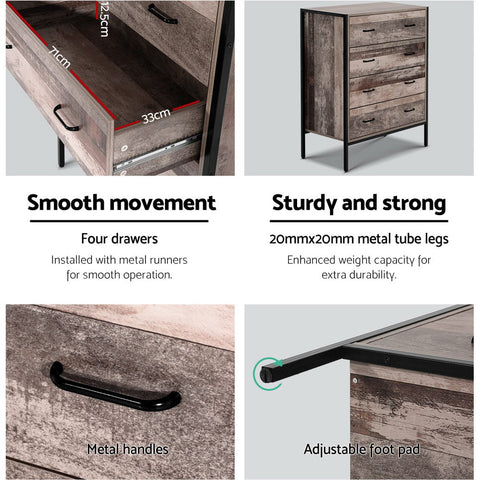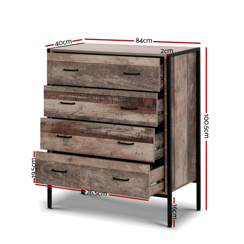 Tallboy 4 Chest of Drawers Bedroom Dresser Storage Cabinet Industrial Rustic