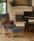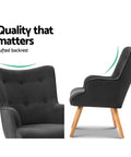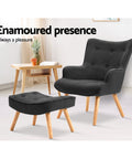 An iconic design that will stand the test of time and taste. The Lansar Armchair and Ottoman is a perfect ensemble to incorporate charm and chic to your home or in any room. With its meticulous craftsmanship, the Armchair is upholstered in premium linen fabric with a rich high resilience foam padding for comfort. The tufted design also adds an extra elegance, Likewise, the Ottoman also shares the same attributes. Not least, the sturdy rubber wood legs are splayed to give the Armchair and Ottoman not only better support and durability but also a unique stance from any angle. Form and function never looked better than with our Scandinavian-inspired Lansar Armchair and Ottoman. Get yours today.