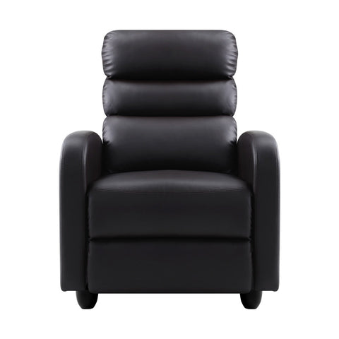 Enjoy the gold class movie experience in your own home with our Artiss Recliner Chair. Richly padded in high-resilience foam and upholstered in smooth and luxurious PU leather, the chair certainly looks like it belongs in gold class. In the upright position, the recliner is a comfortable armchair where you can sit for long chats with guests. Or you can easily adjust the backrest and footrest to recline to your preferred angle. The backrest has three padded zones for full head and back support so that no matter the tilt, you have total body comfort. The chair is suitable in any room with its classic design. Keep it in your study to be perfectly rested during your work breaks. In the living room for watching television or listening to music. Or keep several in the media room for the complete cinema experience. Wherever you decide to put it, you can always sit back and relax on our recliner chair.