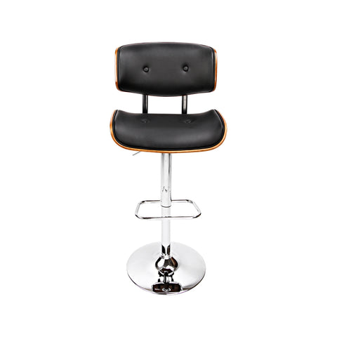 Artiss Set of 2 Wooden Gas Lift Bar Stools - Black and Chrome