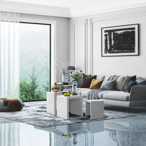 The wooden coffee table is finished with PU and UV lacquer and is water and scratch