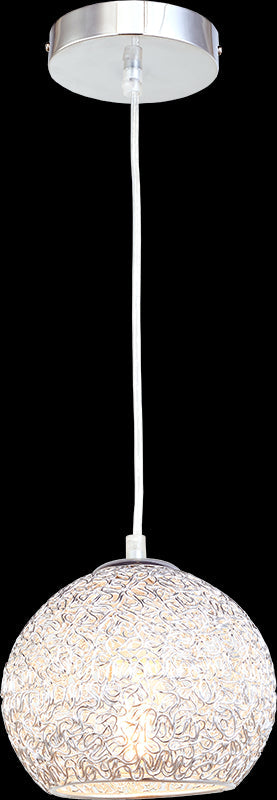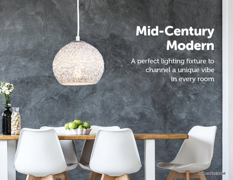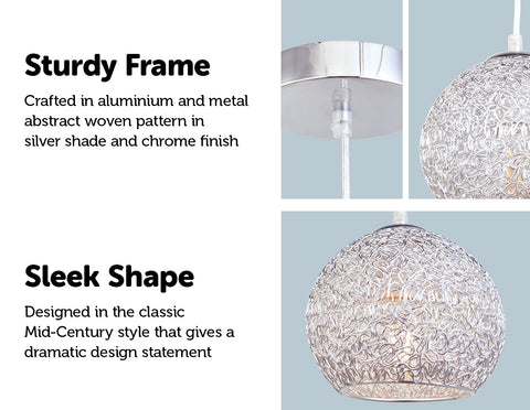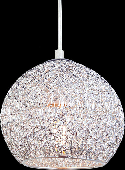 The shade's abstract, woven pattern in aluminium gives it a textural feel as the light bounces off each of the pattern's curves, providing brilliant light. It's the perfect choice for darker kitchens where a touch of brightness is welcome. Its neutral colour accents any colour palette, allowing you to change your kitchen colours without the need to change the fixture. This pendant lamp is equally at home being hung over your home's wet bar, or it can set the mood in upscale restaurants, bars, pubs, and cafes. Use it over your office desk to make a dramatic design statement. If you love a sleek, modern look, this pendant light is the perfect accessory for your space.