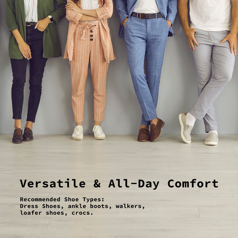 - Dress shoes, ankle boots, walkers, loafer shoes, crocs.