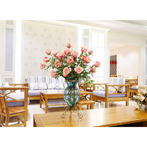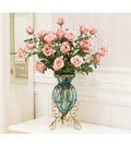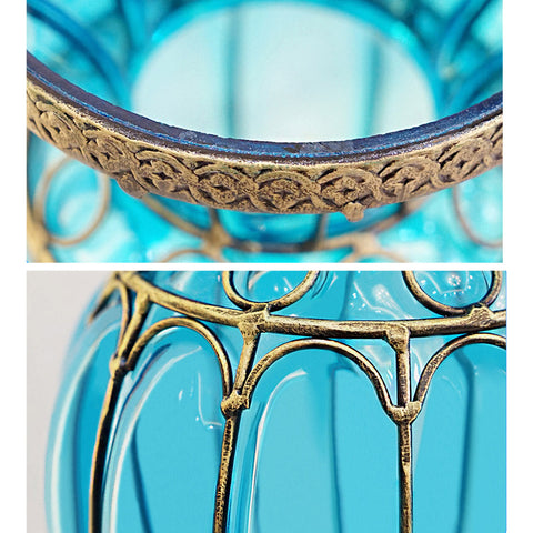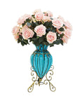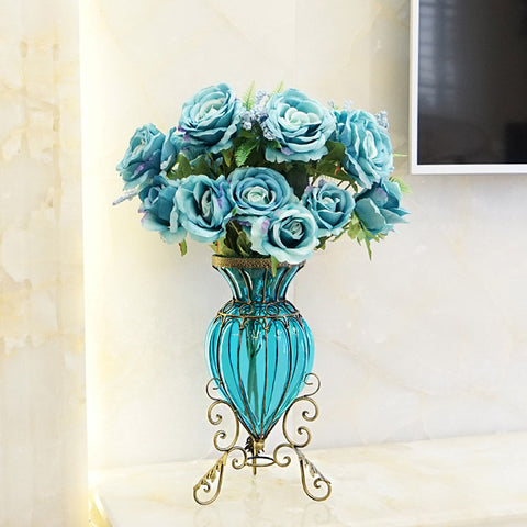 Blue European Glass Floor Flower Vase with Metal Stand