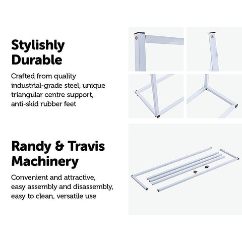Whether you need an attractive display rack for your clothing shop or a convenient way to organise your clothes in your walk-in wardrobe, this designer clothing rack by Randy & Travis Machinery is a perfect solution. Crafted from industrial-grade steel, this rack is as sturdy as it is beautiful, so you needn't worry about it tipping over. Its triangular centre supports ensure stability.