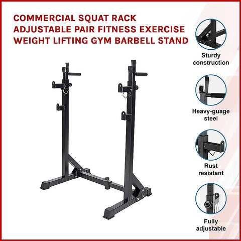 1 x Commercial Squat Rack Adjustable Pair Fitness Exercise Weight Lifting Gym Barbell Stand