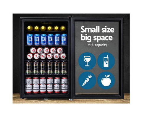 115L Bar Fridge Glass Door Mini Freezer Fridges Countertop Beverage Commercial