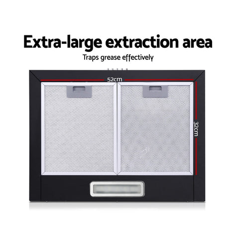 Devanti Pyramid Range Hood Rangehood 600mm 60cm Kitchen Canopy Black