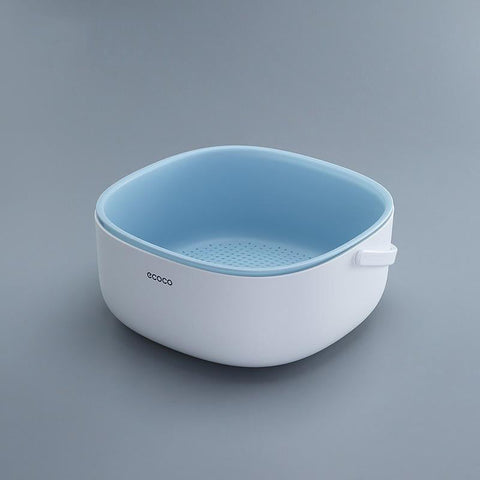 Ecoco Double Drain Basket Bowl Washing Kitchen Strainer Noodles Vegetables Fruit Sink Supplies Blue