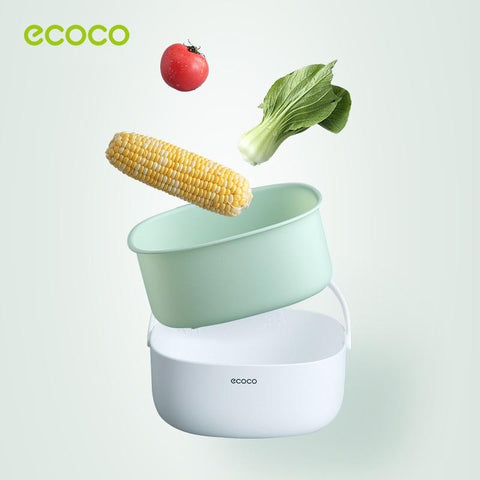 Ecoco Double Drain Basket Bowl Washing Kitchen Strainer Noodles Vegetables Fruit Sink Supplies Grey