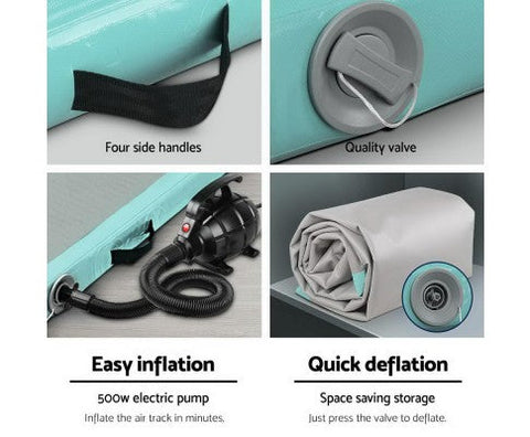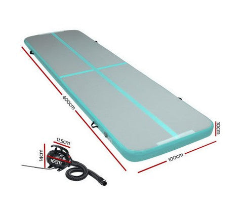 Everfit GoFun 4X1M Inflatable Air Track Mat with Pump Tumbling Gymnastics Green