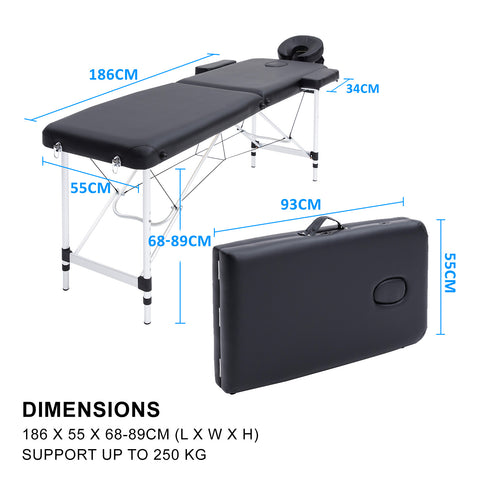 Forever Beauty Portable Beauty Massage Table Bed 2 Fold 55cm Aluminium Therapy Waxing - Black