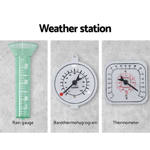 Bonus weather station:rain gauge,thermometer and barothermohygrogram