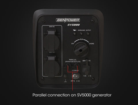With this Parallel Kit you can connect two Genpower SV5000 generators together to safely access 3000W of available output.