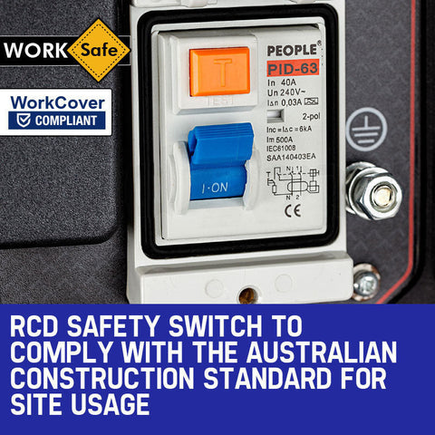 With an RCD Safety switch and external earth point, the GX4335i is WorkCover compliant. Meeting the Australian Construction Standard, this WorkSafe spec model is ideally suited to providing power on construction and mining sites, trade shows and special events. This dependable workmate is housed in an ultra-rigid frame, and with an oversized 15 litre fuel tank capacity it can run for up to 9 hours unattended.