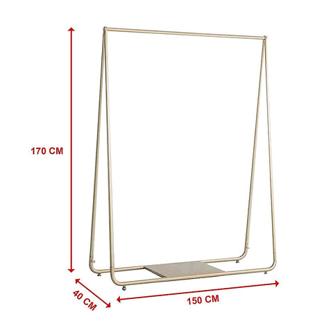 It has a smooth golden finish and a sleek design perfect for adorning your garments! The rod at the top is designed to hang all sorts of garments and the rectangular space at the bottom can be used to display shoes such as stilettos, moccasins, or flats.