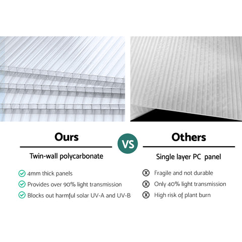 Greenfingers Greenhouse Aluminium Polycarbonate Green House Garden Shed 3x2.5M