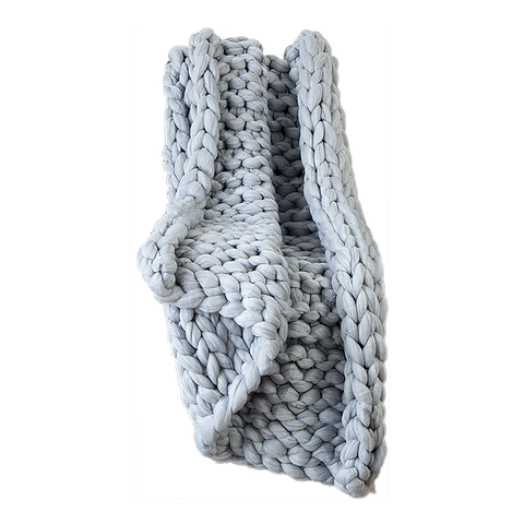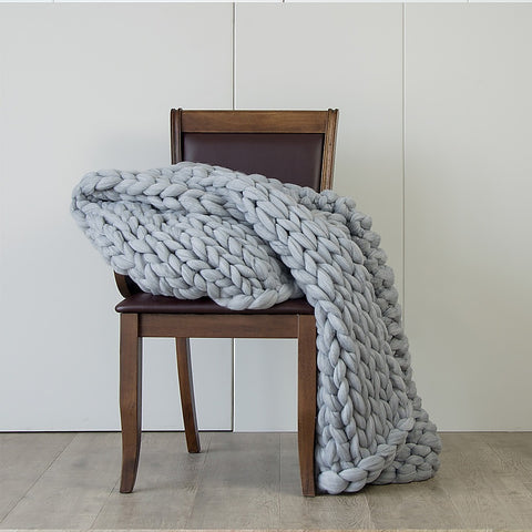 Hand Knitted Chunky Blanket Thick Acrylic Yarn Blanket Home Decor Throw Rug - Grey