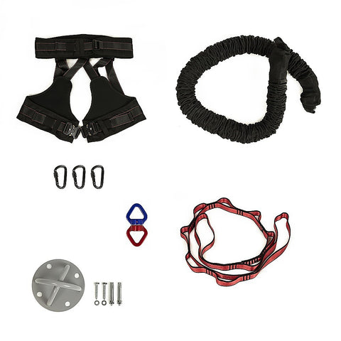 Add variation and interest to your workout with this easy-to-use Randy & Travis Machinery Heavy Bungee Cord Resistance Belt. Users can perform exercises either fully suspended, or using the resistance belt to add difficulty to a full or partial weight-bearing exercise. Depending on how the belt is used, it can provide support when attempting more challenging exercises, or add resistance to add challenge to simple exercises.
