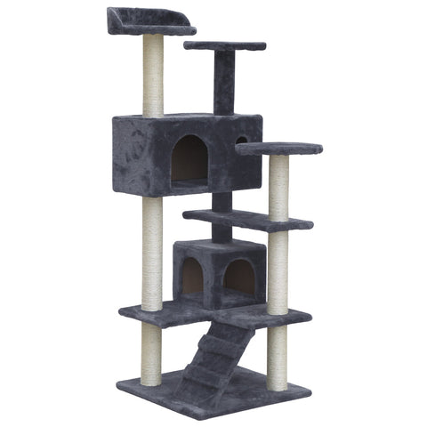 i.Pet Cat Tree 134cm Trees Scratching Post Scratcher Tower Condo House Furniture Wood Grey