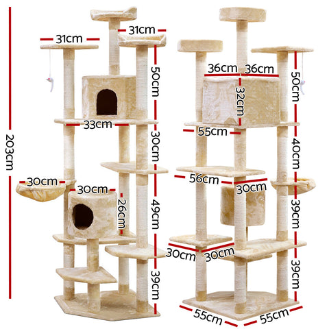 i.Pet Cat Tree 203cm Trees Scratching Post Scratcher Tower Condo House Furniture Wood Beige