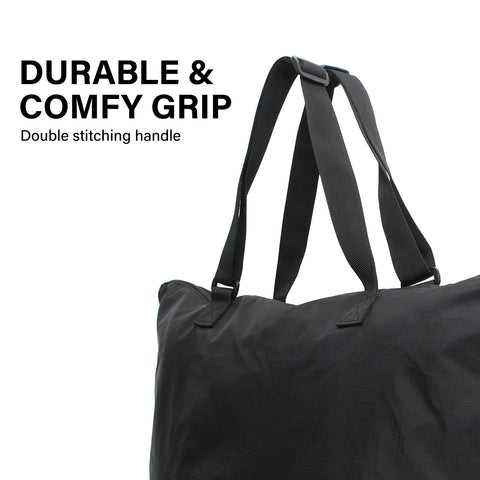 DURABLE and REINFORCED BOTTOM: The packable bag is made of lightweight but strong material which minimizes wrinkles. The reinforced bottom keeps its original shape from sagging. Durable shoulder strap and strong, soft zipper make it sturdier.