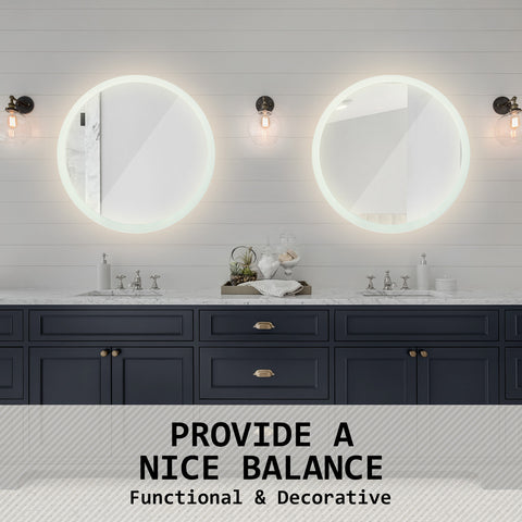 The LED round mirror is modern and clean in design comes with an energy-efficient LED light strip place around the mirror. This illuminated mirror besides saving more energy and cost than light bulbs but also has a long-lasting lifespan of up to 50,000 hours. Not to mention it combines dual-channel LEDs greatly affect aesthetics and ambience. You can adjust its colour temperature range from a mix of warm yellow and cool white LEDs and cross-dim between the two with a simple long touch.
