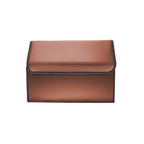Leather Car Boot Foldable Trunk Cargo Organizer Box Coffee Medium