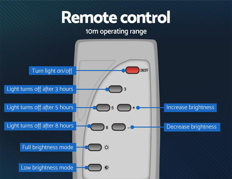 With its larger solar panel and powerful LED lights, our LED Solar Sensor Light shines brighter than most with even faster battery charging. It lights large areas using little power, thanks to the reflector which allows the LEDs to appear six times brighter and the intelligent light control system. The light sensor works to automatically charge the solar light during the day and light it up at night. And with the included easy-to-use remote control, you can set the mode and adjust the timer and brightness to suit your requirements.