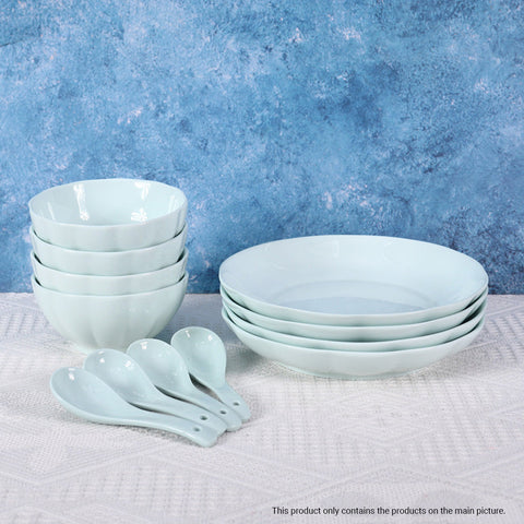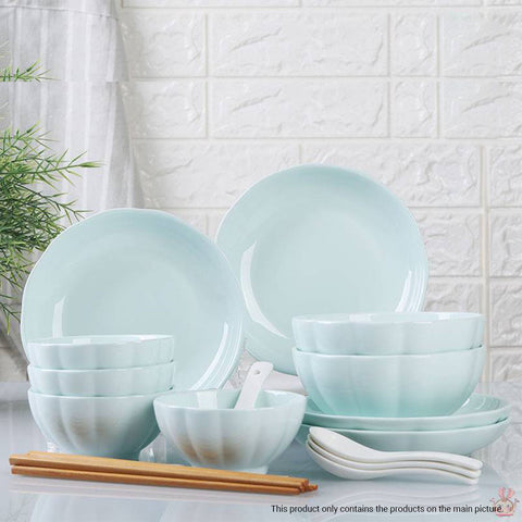 - 1X SOGA 10 pcs Light Blue Ceramic Dinnerware Set (4 Bowls, 4 Plates, 4 Spoons, 4 Pairs of Chopsticks, 2 Noodle Bowls)