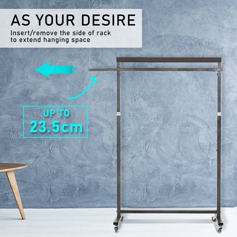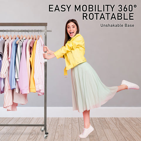 Meoktong Pearl Grey Clothes Rack Coat Stand Hanging Adjustable Rollable Steel