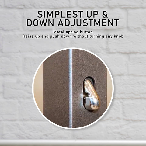 In terms of height adjustment, it can be done without tightening any knob. Raise it up and pushing it down is super handy according to your desire. The rods are equipped with 4 adjustable heights to suit users/objects of different heights.